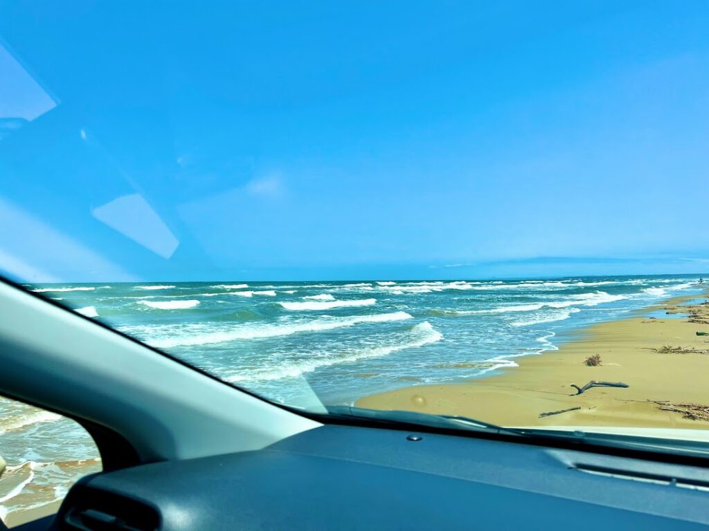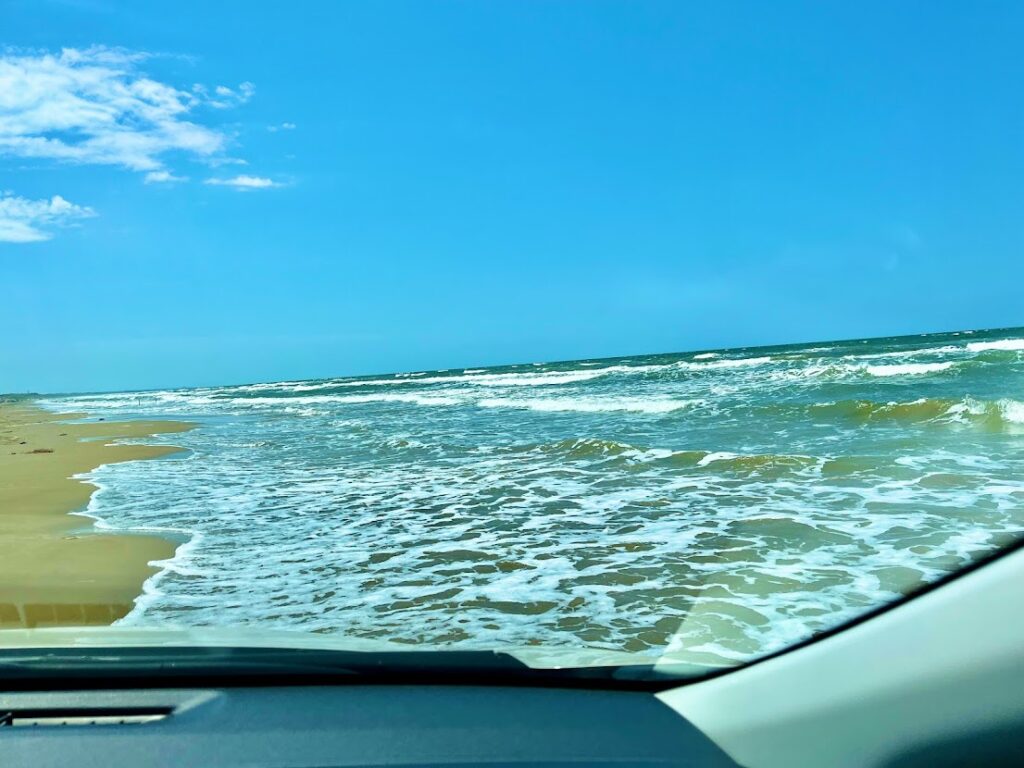 車の窓を全開にしてみた!海風が心地よい!・・・オープンカーの気分だが、むしろこちらがいいな。屋根がある分、日光、紫外線の直撃がないからな。