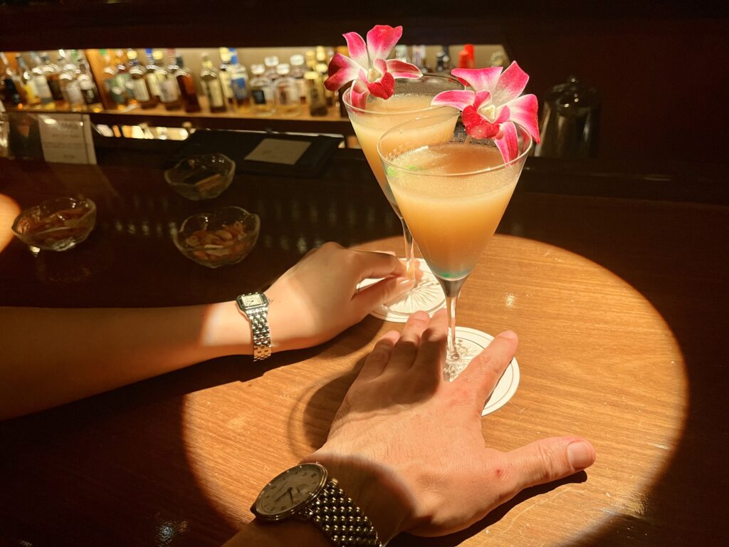 チェックアウトの前日の夜。投資家バーで、美女とナイスガイとで傾ける。悪くないな。