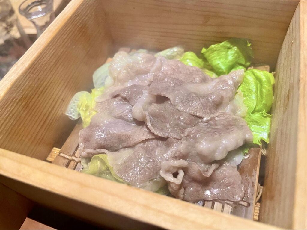 薄切り牛肉の蒸し焼き。塩味風味の下味が付いていて、やはり美味し。