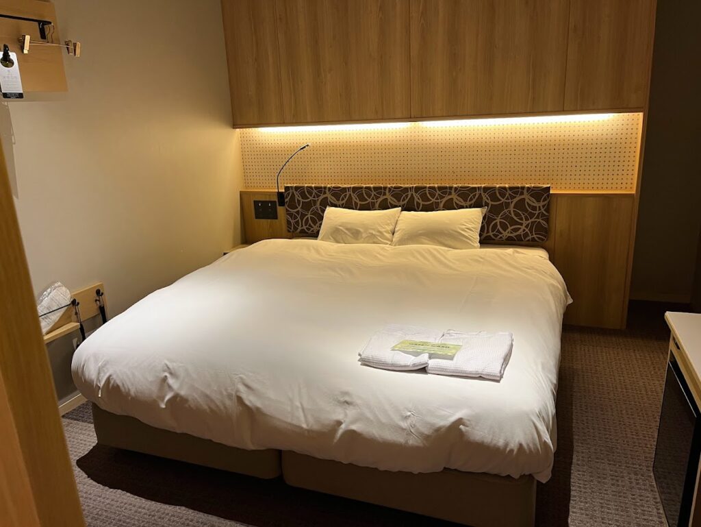 今日の宿。ホテルヒラリーズ心斎橋。シンプルなビジネスホテル。深夜にチェックインし早朝にチェックアウトだから、これで必要十分。