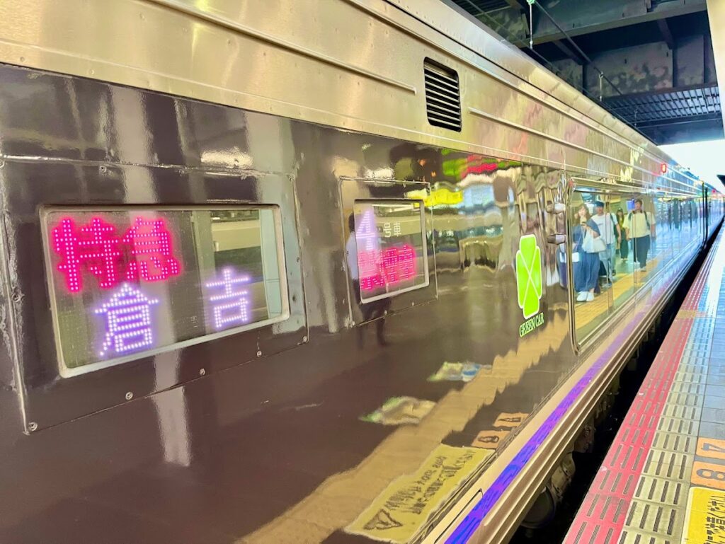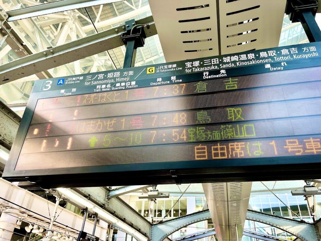 朝が来た。大阪駅にて。特急「はまかぜ」で、城崎温泉に向かう。車内もいいムードだが、乗車率5%ぐらいかな。