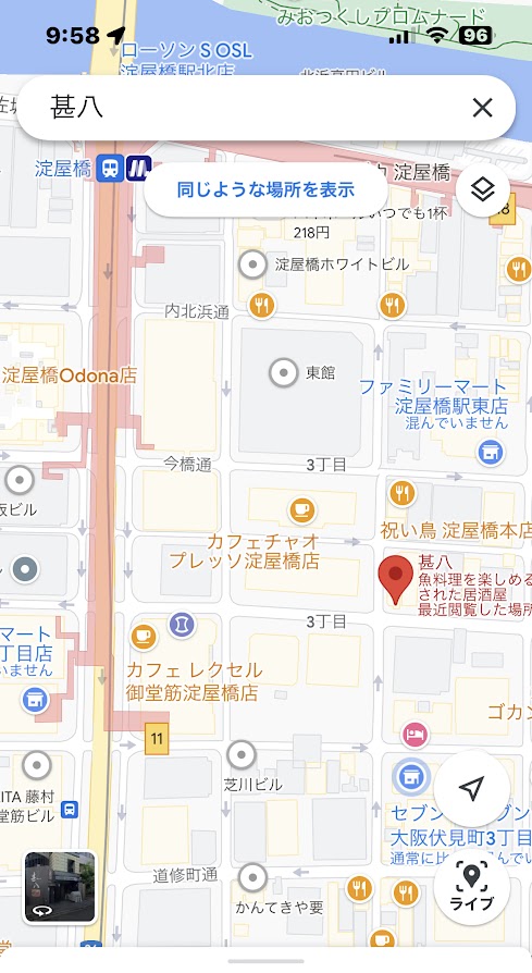 位置関係を。昨日訪れたかんてきや要からも甚八からも歩いて行ける距離だな。