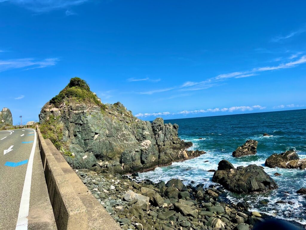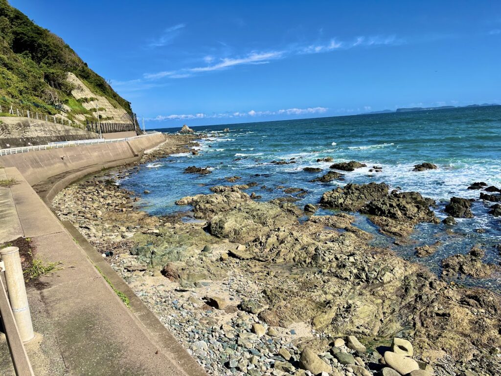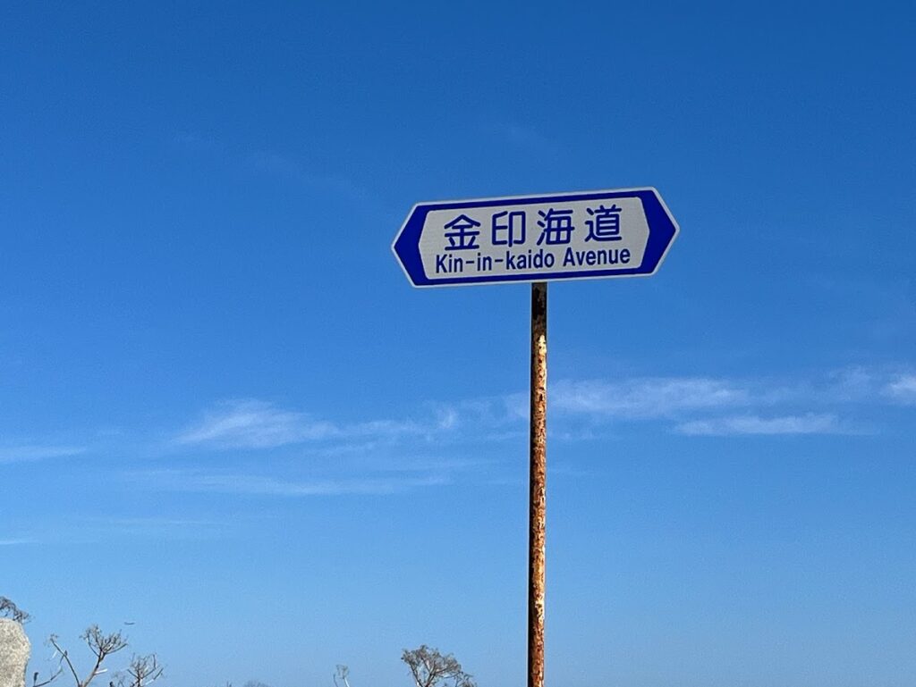 島の外海に近い方。荒っぽい岩場の海だけどきれいだよな。ここは金印が出た出たということでも有名で、金印街道と名付けてられているらしい。