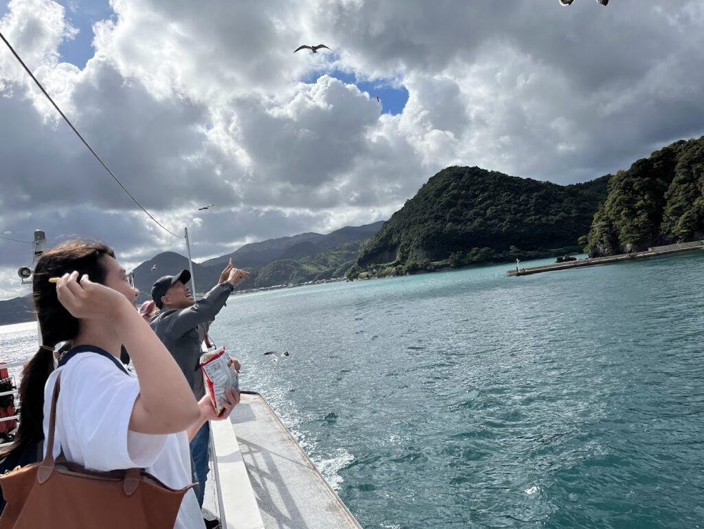 カモメが飛んでくるんだな。みんな100円で買った餌をまいて、カモメにあげようとするけど、なかなか難しいみたいだ。
