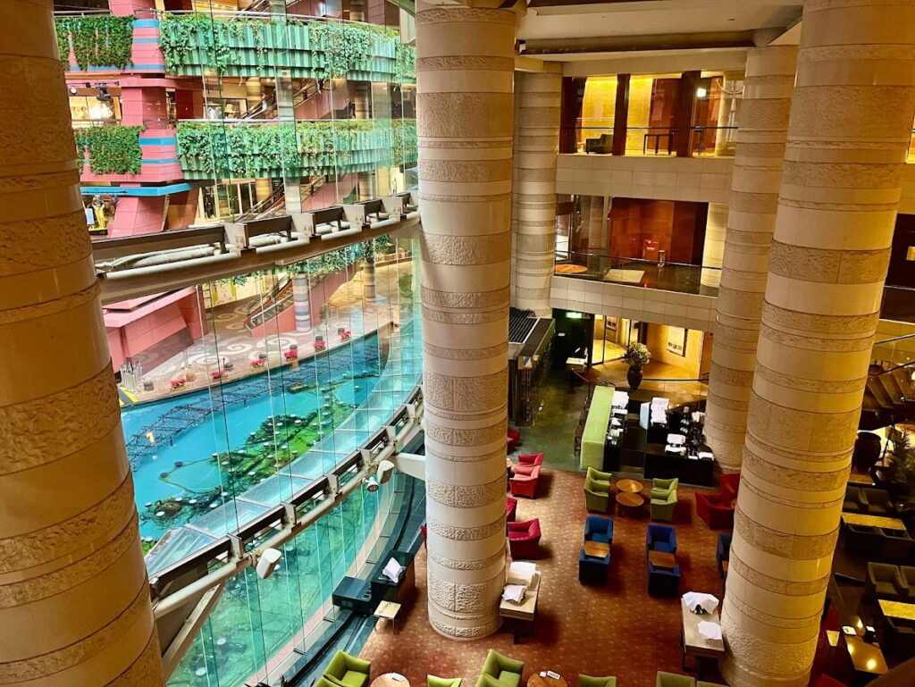 キャナルシティには、グランドハイアット、福岡が入っている。早朝なんで人はほとんどいないけど、豪華な感じは伝わるな。
