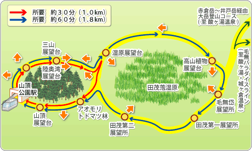 60分コースの地図。八甲田ゴードラインというんだな。写真の通りです。