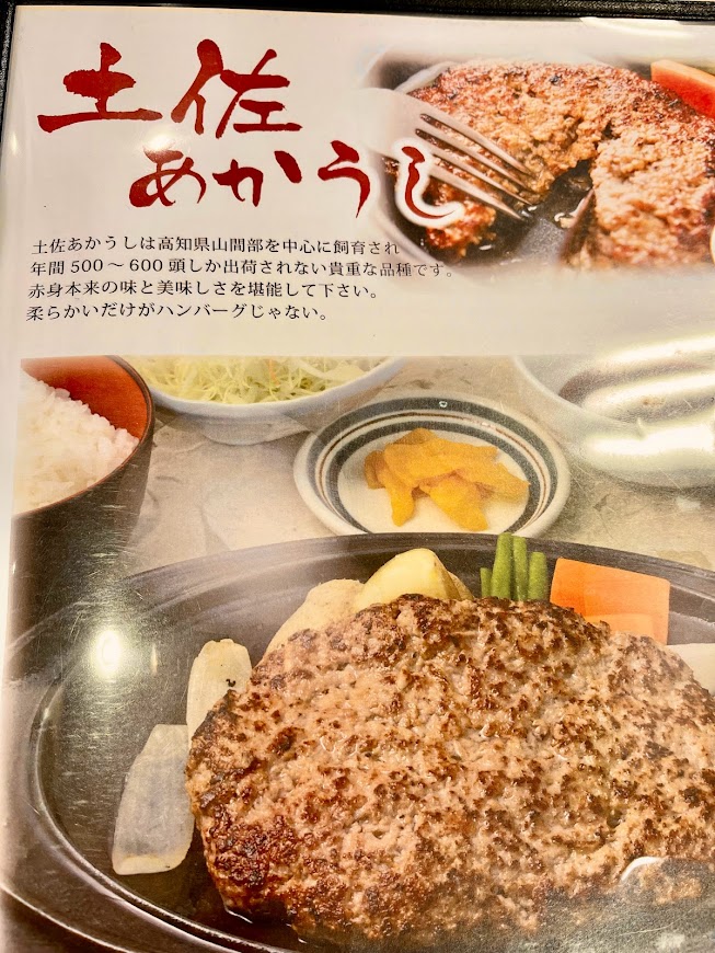 大歩危に向かう途中の高速道路のPAで、土佐あかうしのハンバーグ定食をいただく。土佐あかうしについては知識も情報も全くなかったが、これが思いもかけず、美味しだったな。