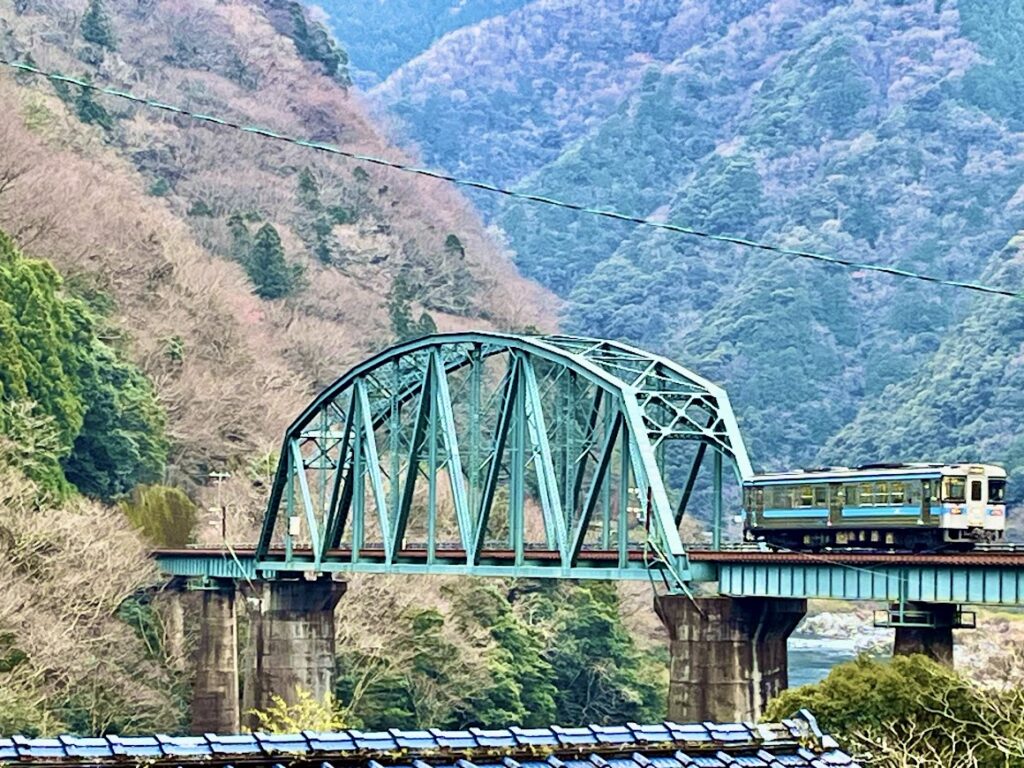 驚いた。昨日、この宿の露天温泉から写真を撮ったその鉄橋に、テツが!!!こういうの、すごく嬉しいんだよな。ちなみにこれは、土讃線の鈍行。