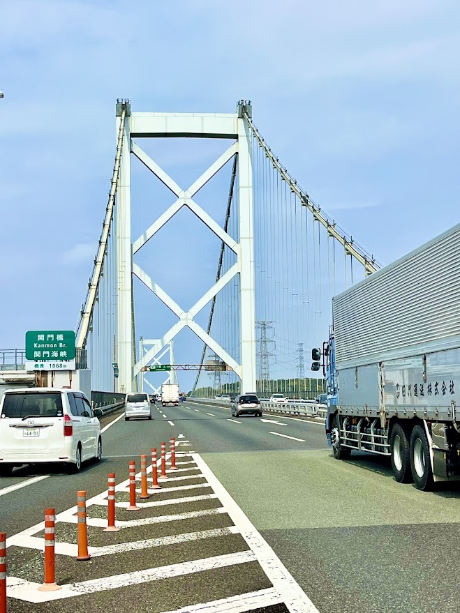 北九州空港から、角島大橋に向けて走り出す。まずは、関門橋。スケール感、ハンパないよな。