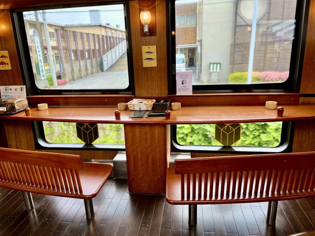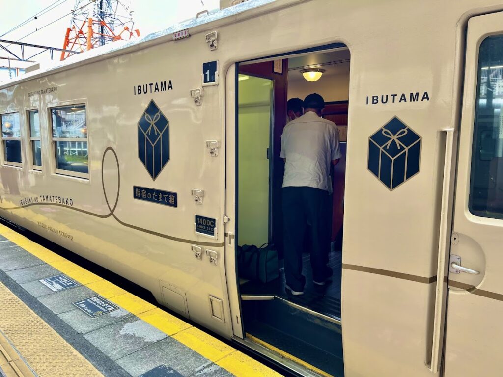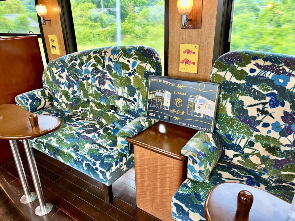 ここは指定席とは別の、錦江湾が良く見えるサロン座席。上の写真は、ここで撮ったものです。