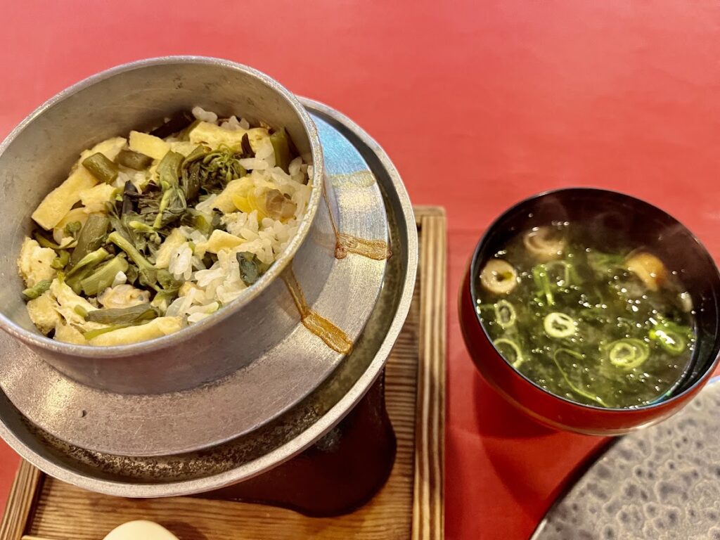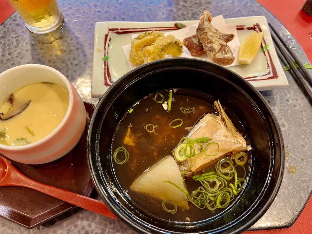 揚げ物とお食事。内容はメニューにある通り。美味しかった。