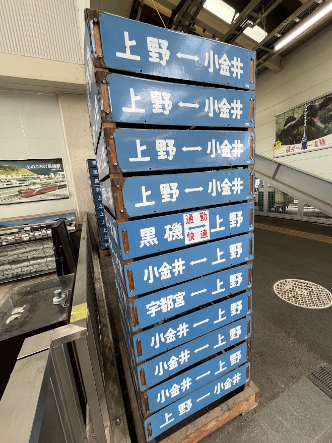 これは懐かしい。国鉄時代の行き先表示板が、たくさん飾られていた。確かに、以前は、こういうのを、客車車両に使っていたよな。