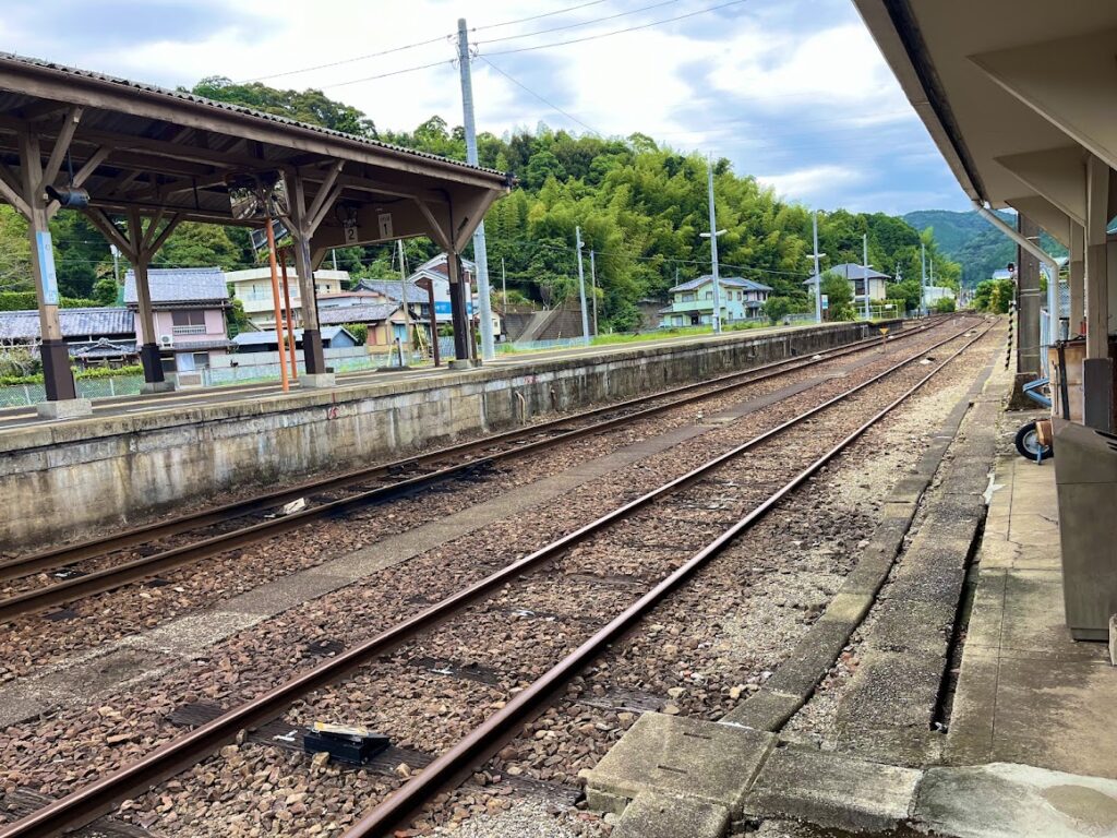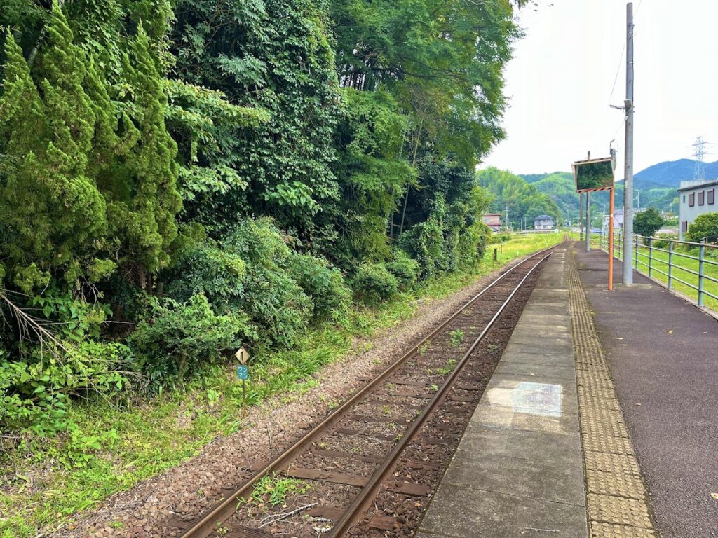 JR牟礼線の泡福井駅に立ち寄る。しかし、以下の通りダイヤがまばらで、列車と出会うことはできなかった。