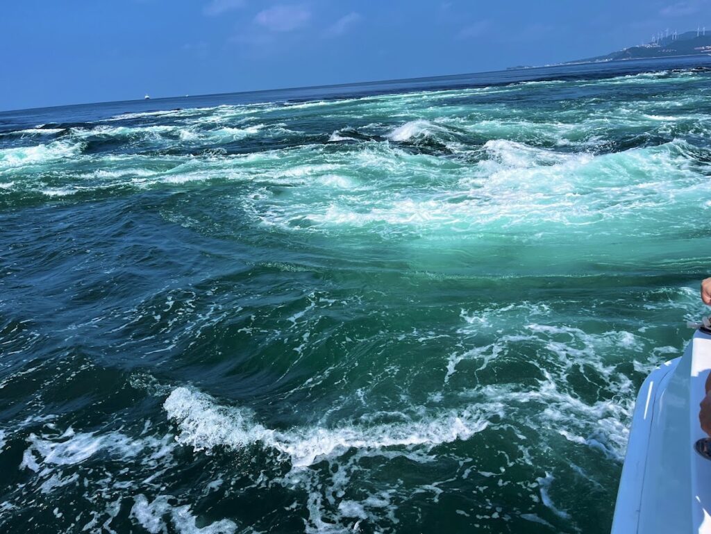 ものすごい迫力、そして美しさ!!! 天気が良かったのと、潮の満ち引きに伴う渦潮の出来が、この日は完璧だった!!!