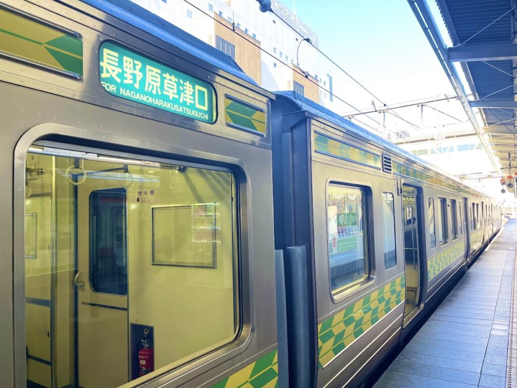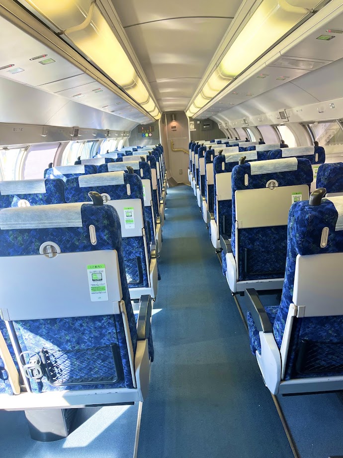 この日は、鈍行のグリーン車で向かいました。この写真は終点高崎駅近くのもの。終点近いからもう人がほとんど乗っていませんね。