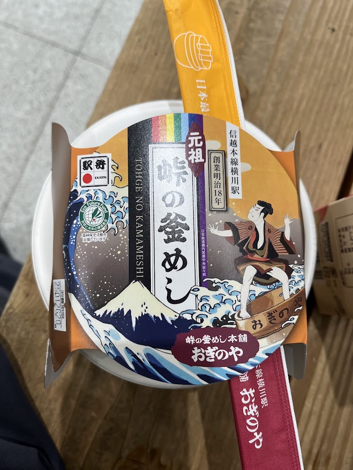 次の列車の運行時間までかなり時間があったから、高崎駅で峠の釜飯をいただく。これは本当は神様の手前の横川駅で売られていたものなんですよね。それを今では高崎駅で売っているんだなぁ。おいしかったです。