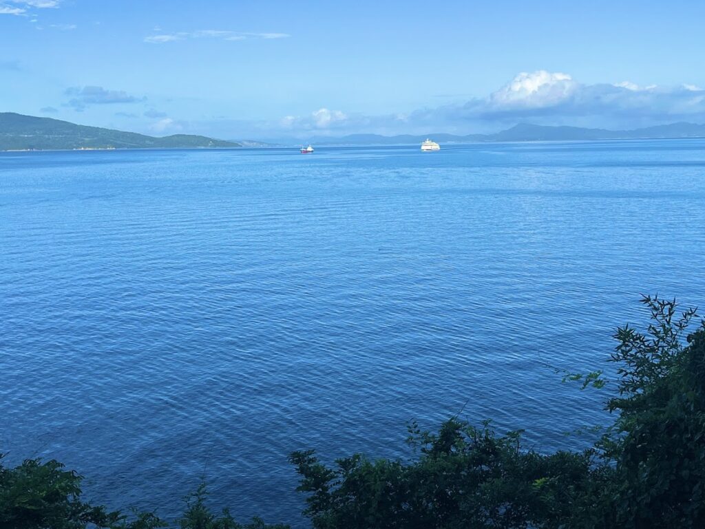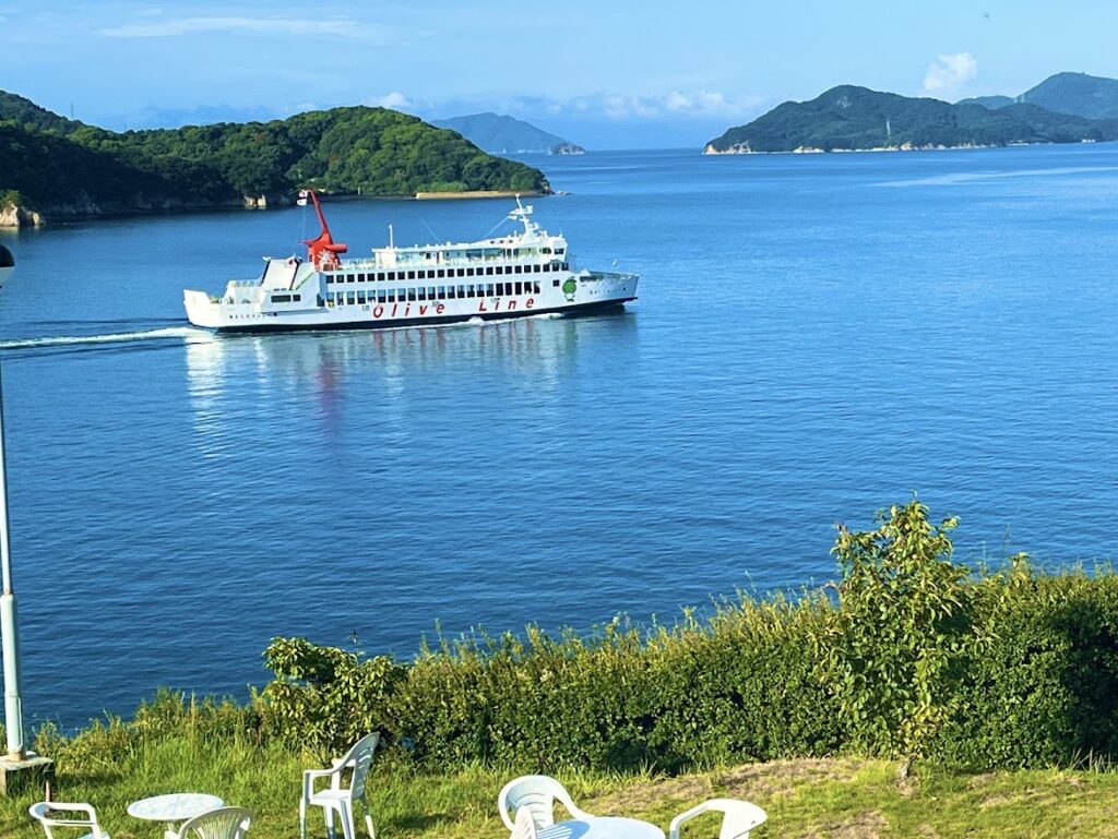 少し足を延ばす。海がきれい。今日は天気がいいな。下のolive lineは高松港行きのフェリーだよな。