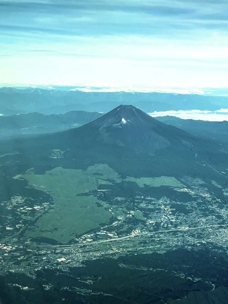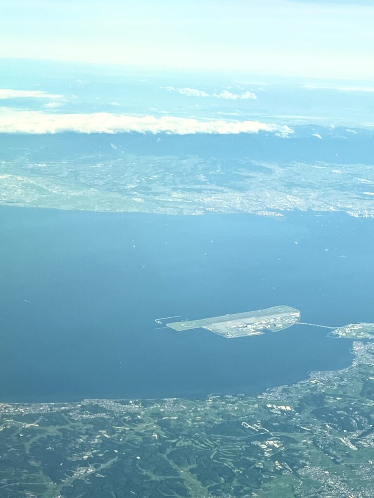 羽田ー伊丹JAL101便からの車窓。夏の雪のない富士とセントレア空港。きれいだよな。
