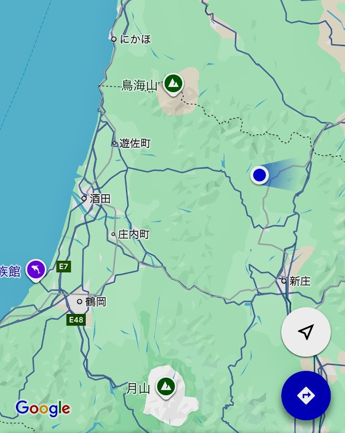 鳥海山が見えてきた。さすがに姿がいいな。その向こうには日本海が。