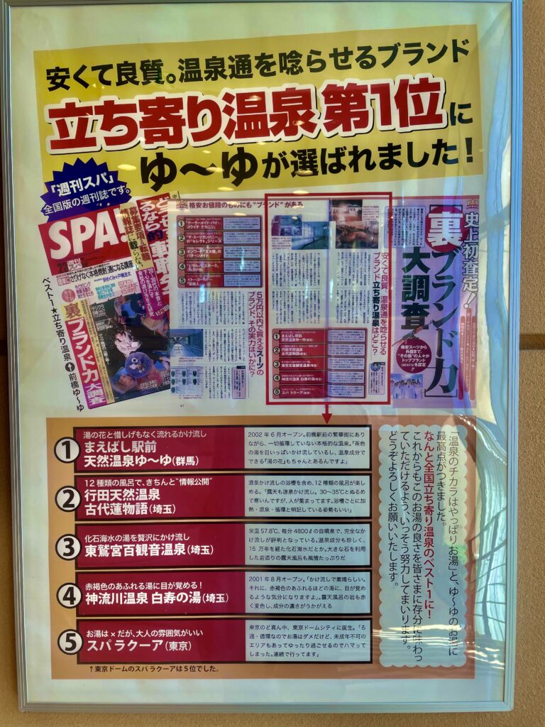 「まえばし駅前天然温泉ゆ~ゆ」ですね。前橋駅前から徒歩3分ぐらい、好立地の温泉でした。