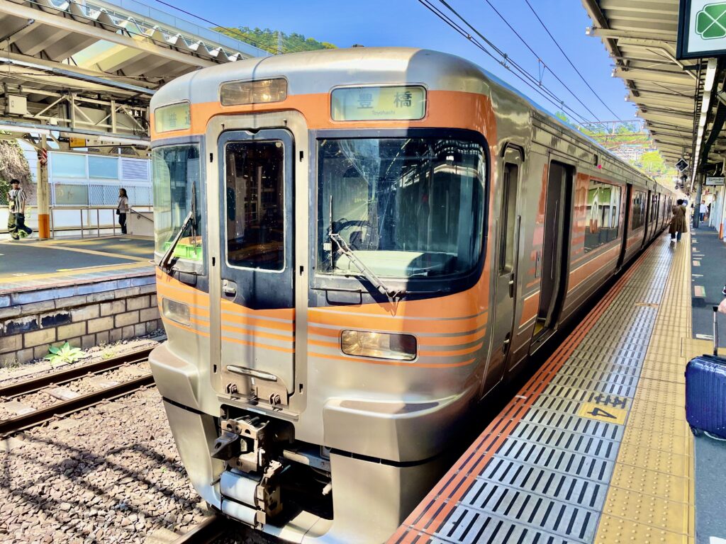 熱海駅に到着。下り方面の東海道線、豊橋行きが待っていた。そうか、熱海から大阪方面に行くと、豊橋が終点になるのかな?