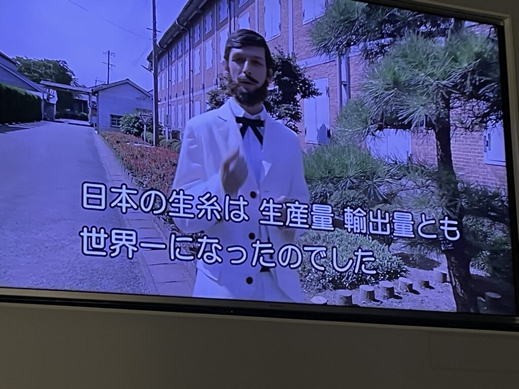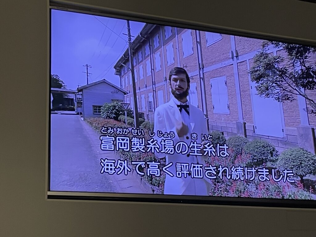 彼は初期の富岡製糸場の初代首長ポール・ブリューナさん。もちろん本人ではないが、彼のような方が、この製糸場の運営に尽力してくれたというわけだ。これは10分程度の、富岡製糸場の紹介ビデオのワンシーン。