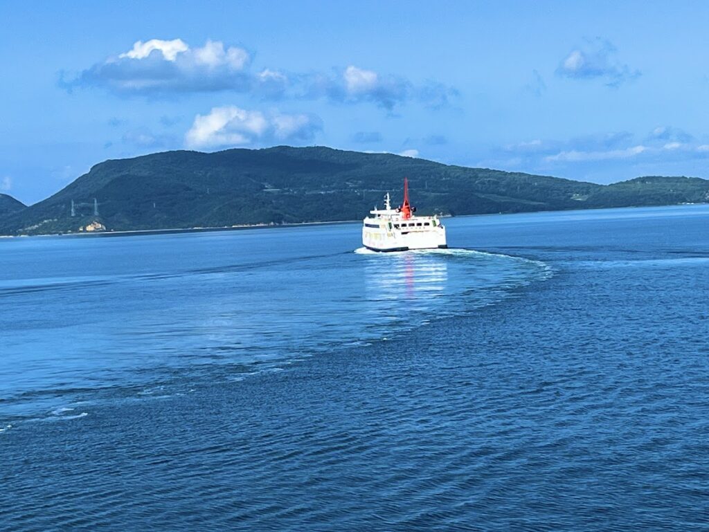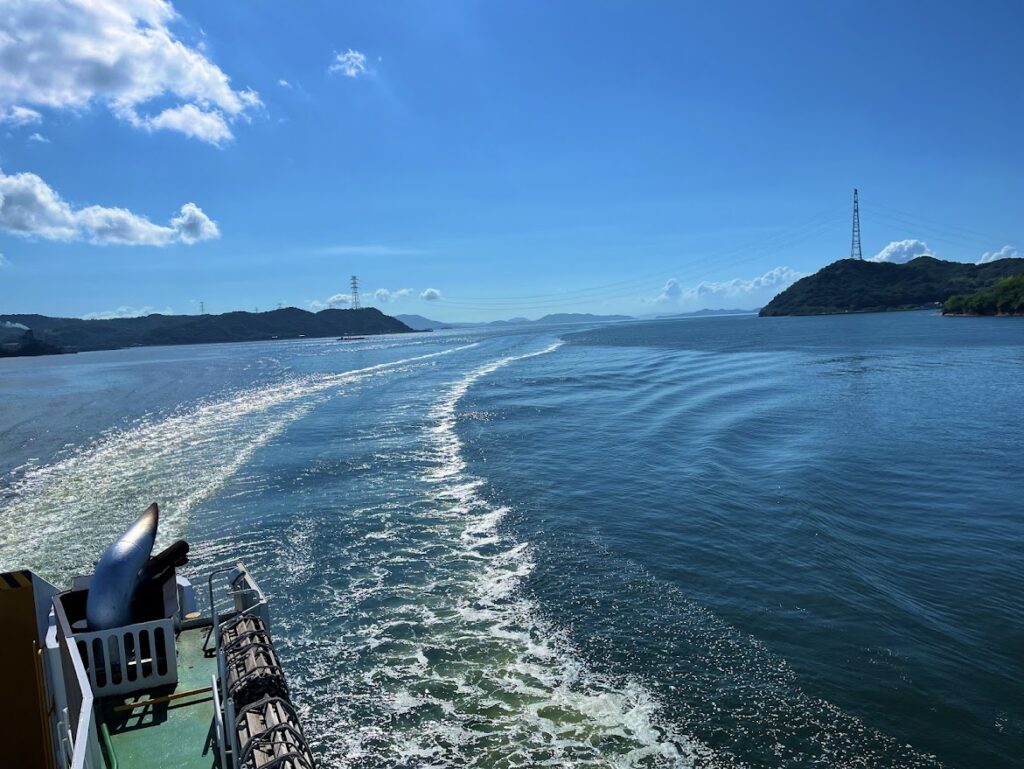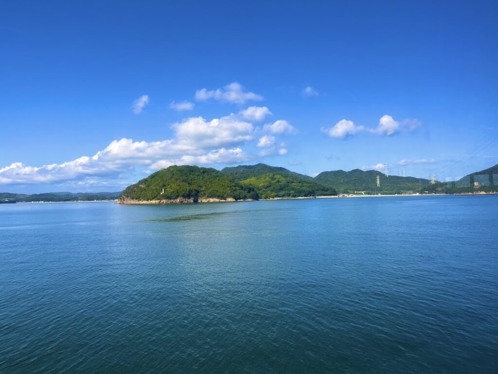 土庄港から岡山港間の景色。きれいだよな。今日も天気がいいな。