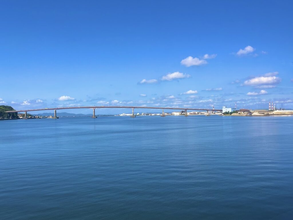 岡山港が近くなってきた。橋がきれい。
