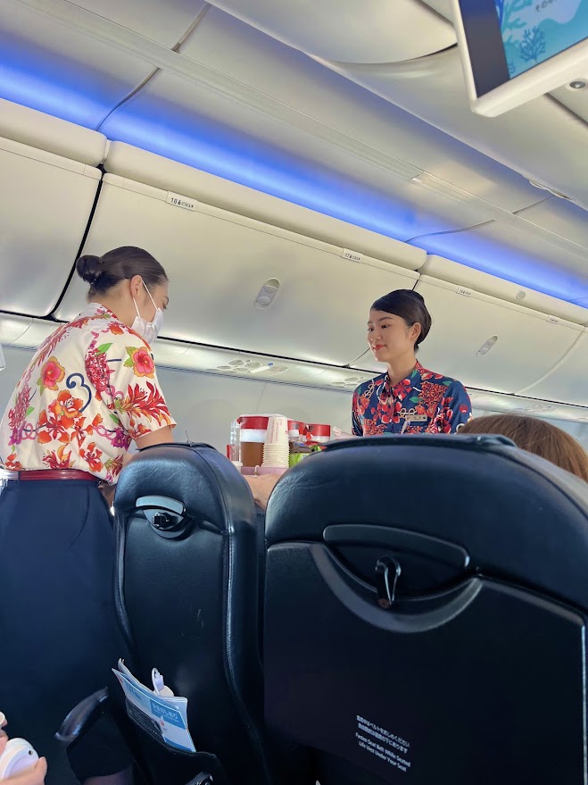JALのCAさん、これ、夏服なのかな。いい感じ。