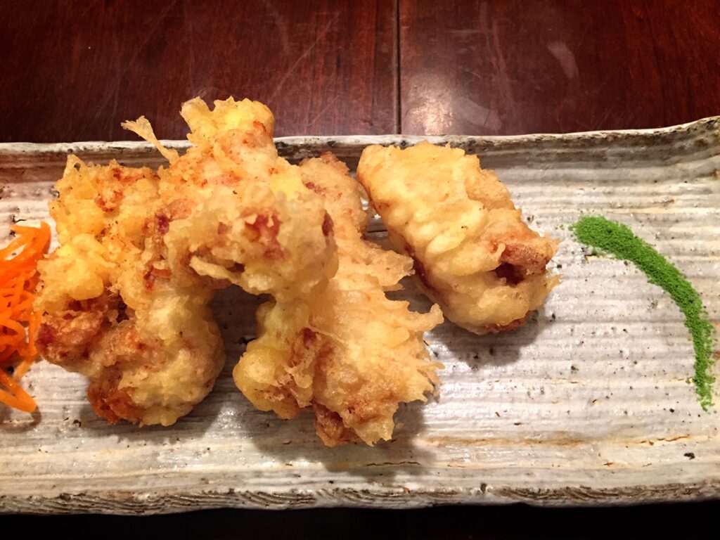 鶏の天ぷらを抹茶塩で。唐揚げではなく天ぷらであるところが、大分のソウルフード、大分の流儀。やはり旨かったなぁ。