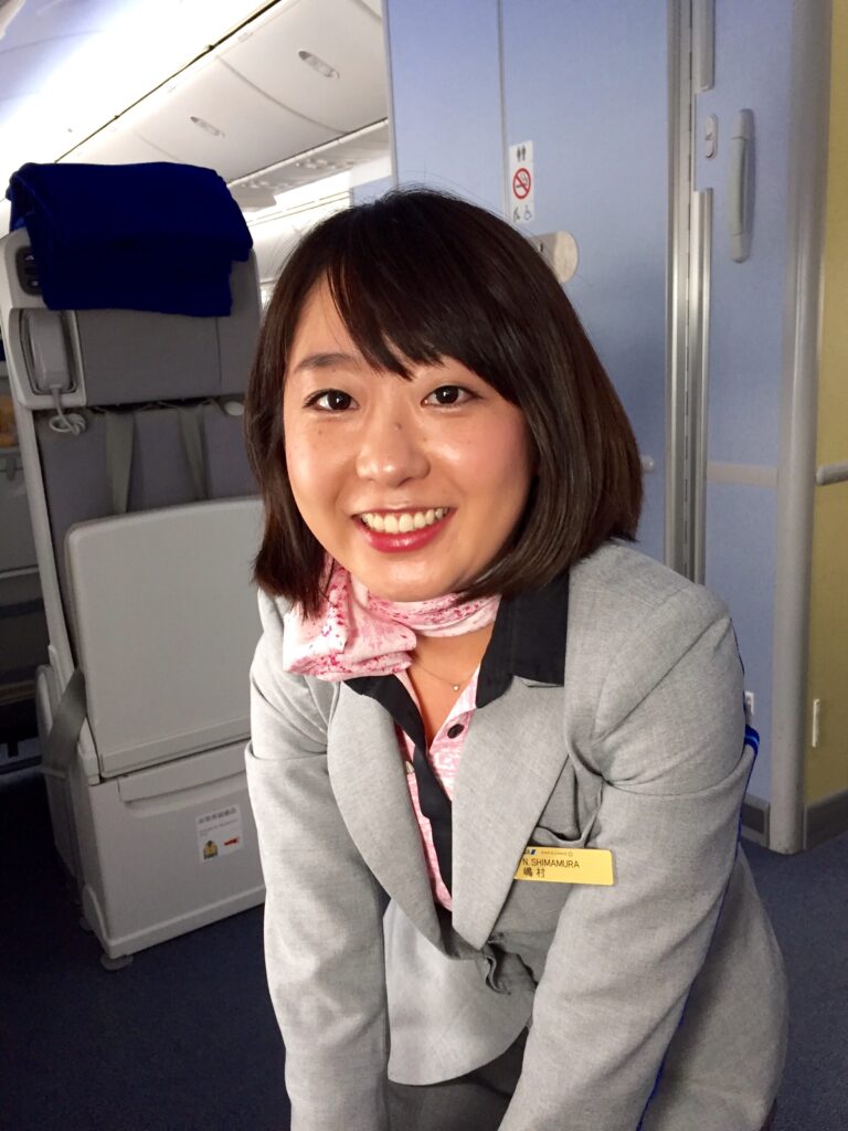 羽田-熊本便、ANAのCAさん。当方は1番前、CAさんとお向かいの席だった。だからこの方と、いろいろな話をさせてもらった。彼女も喜んで対応してくれた。ハートの良いきれいな人だったな。旅の最初からツイてるって。
