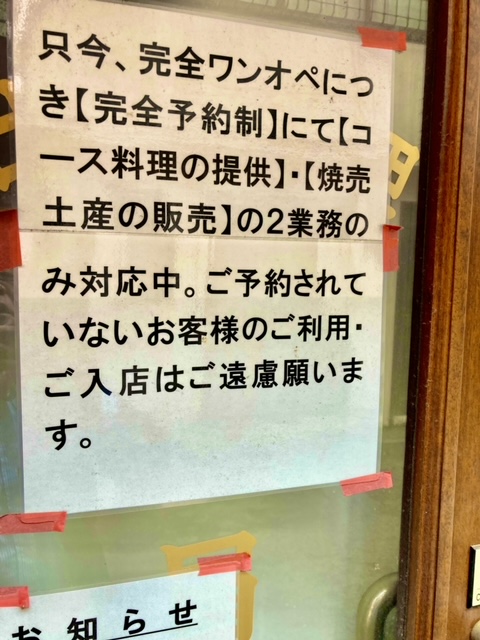 今は、事前予約のコース料理だけをやっているみたいだな。