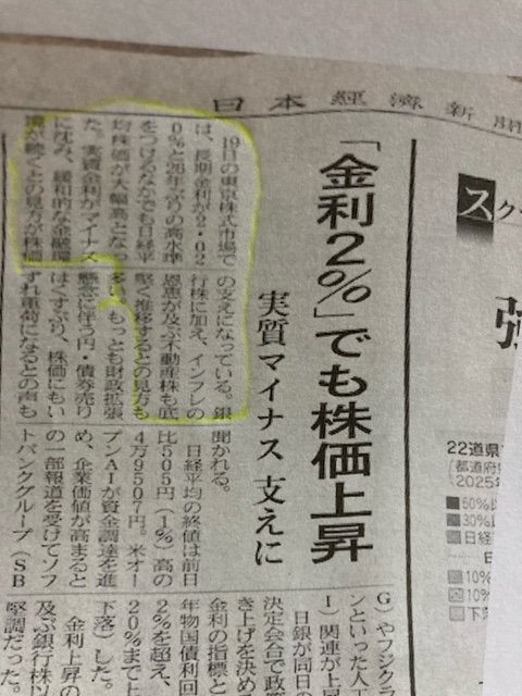 19日の東京株式市場は、長期金利が2.02%と26年ぶり水準を付け、一時2.2%まで上昇する中でも日経平均は大幅高となった。日経平均の終値は505円(1%)高の4万9507円。実質金利がマイナスに沈み、緩和的な金融環境が続くとの見方が株価の支えになっている。銀行株に加え、インフレの恩恵が及ぶ不動産株も底堅く推移するとの見方も多い。