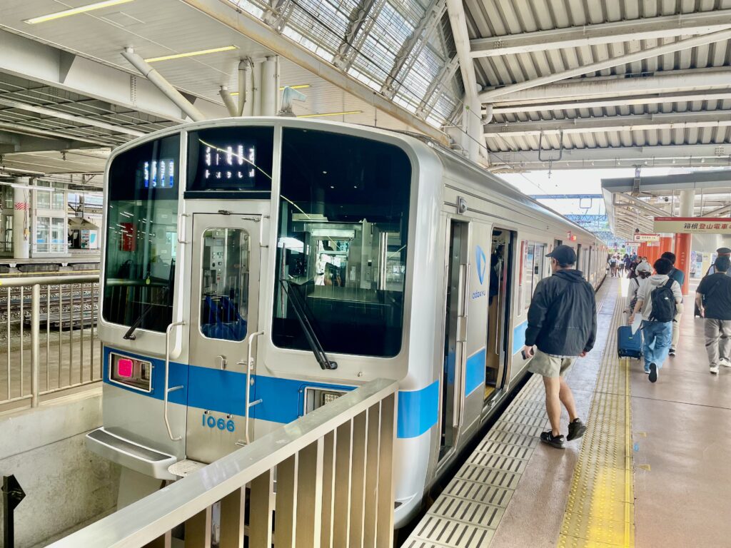 箱根湯本に到着。小田急の古い車両が「展示されれていた。懐かしいな…