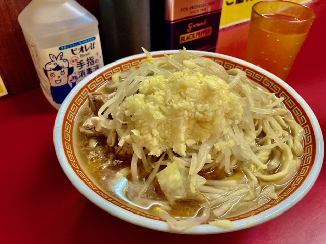 ラーメンが出てきた。ニンニクと野菜マシマシ。小ラーメン600円也は、実際のサイズは小サイズではなく普通サイズ。これで600円は安いよな。満足です。今日は食事はこれ一食で終わり。それほどのボリュームでした。味はいつもの二郎ラーメン。最高でした。