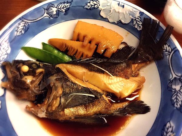 黒カサゴの煮付け。お店の大将曰く。煮付けで食べるんだったら、今日はこの黒カサゴが最高と。産地は瀬戸大橋の下あたりと。