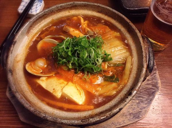 魚介の辛味鍋。一人前。瀬戸内のいろんな魚介がちょこちょこっと入っている。後は野菜や豆腐をチゲ鍋風に。う~む。しみじみ、旨し。